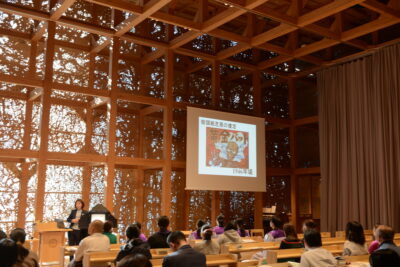 岡部先生が、そうした今井よね先生の功績や実践を評して、「紙芝居とキリスト教伝道とは切っても切れない関係にある」と強く語っておられたことは、大変印象に残りました。多くのキリスト教学校では、クリスマスの時季にイエス・キリスト降誕劇のページェントを実施します。多くの場合はストーリーテラーが話の流れを語りながら進める『無言劇』のスタイルです。舞台の規模は違っても、そこに集う会衆に効果的に何かを伝えようとする点などは、紙芝居も同様なスタイルであることが容易に理解できます。ましてや、大人だけでなく子どもにも何かを伝えることが出来る点で、紙芝居は非常にすぐれた手段であったと考えられます。本日の資料としてお配りいただいた「宗教紙芝居-教育紙芝居の始発-」のプリントには「クリスマス物語」や「ノアの箱舟」、「善き羊飼い」など定番の聖書の物語の紙芝居作品が紹介されていました。さらに、学園名に【新島】の名前をいただいている私たちにとって、「新島襄」の紙芝居作品が紹介されていることは、本当に喜ばしい出来事でした。